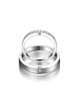 相扣的線條,如愛侶緊牽的雙手,更寓意著愛情的奇妙運轉。兩個人,由相識到結合,因愛而讓彼此的心靈貼近,逐漸融為一體,帶來靈魂的無間契合。將一生不變的承諾,用鉆石永恒定格。