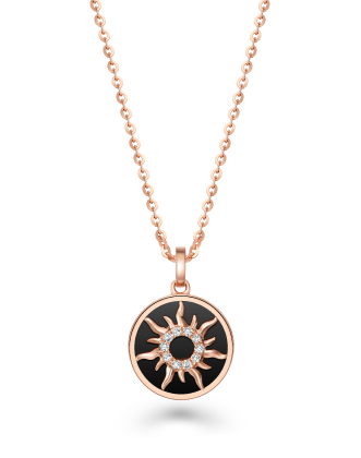 This pendant’s central sun shape embodies positive energy and vitality, and the black lacquer of the base form a remarkable contrast. This piece serves as an ode to the female spirit’s pursuit of her dreams and to her fearlessness in the face of challenge.