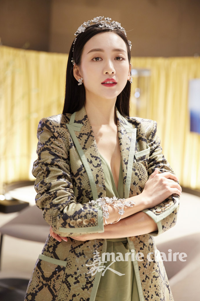 正是源于對作品的喜愛,看展結束后,王鷗試戴了《扇面》、《花開五?!?、《旗袍女士》、《月光女神》等多套作品,超凡的女神氣質將“中國·韻 ”系列高級珠寶和《月光女神》演繹得格外璀璨出彩。
