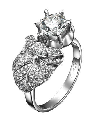 “鉆石之母”以世界最大的金剛石礦穴——金伯利礦場為靈感設計而成,主題呈火山狀隆起,表現深埋地底數億年的神秘鉆石,經由火山活動被帶到地表的噴薄景象;網格放射狀的線條代表鉆石的切工,寓示鉆石從形成到開采切割過程中的高技術含量的人工因素;火山狀的中心隱藏一個可取下的戒指,戒指主石5.18克拉象征金伯利鉆石誕辰日即為5月18日,作品形象的表達了金伯利鉆石的淵源與品牌的誕生。